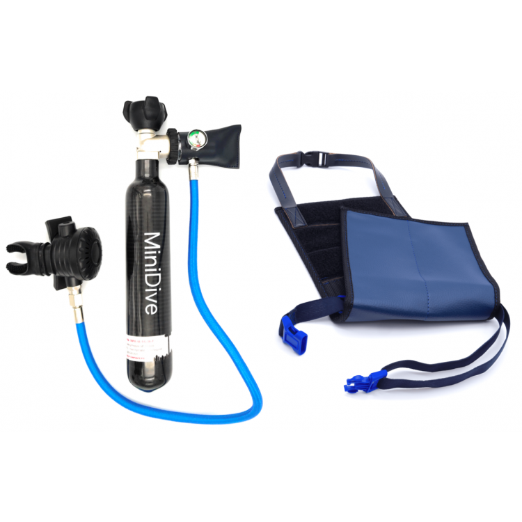 Zestaw składa się z butli 0,5L o ciśnieniu 200 bar, automatu nurkowego na wężu oraz uprzęży. Zestaw jest bardzo łatwy w użyciu, wystarczy tylko wziąć automat w usta i oddychać!
