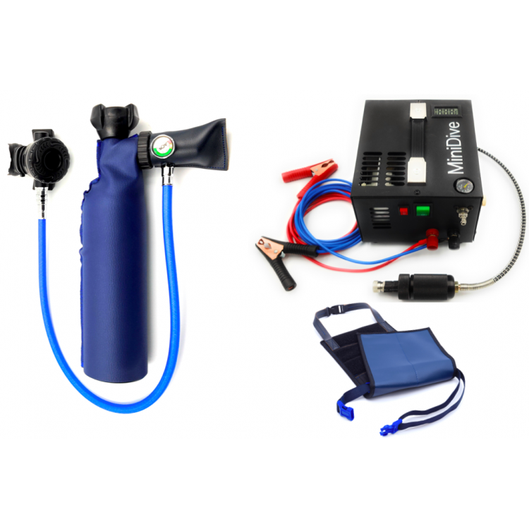 Mini Dive Pro+ to mały awaryjny zbiornik do nurkowania, który można napełnić za pomocą kompresora Minidive, stacji napełniania lub mini kompresora nurkowego 12 V.
