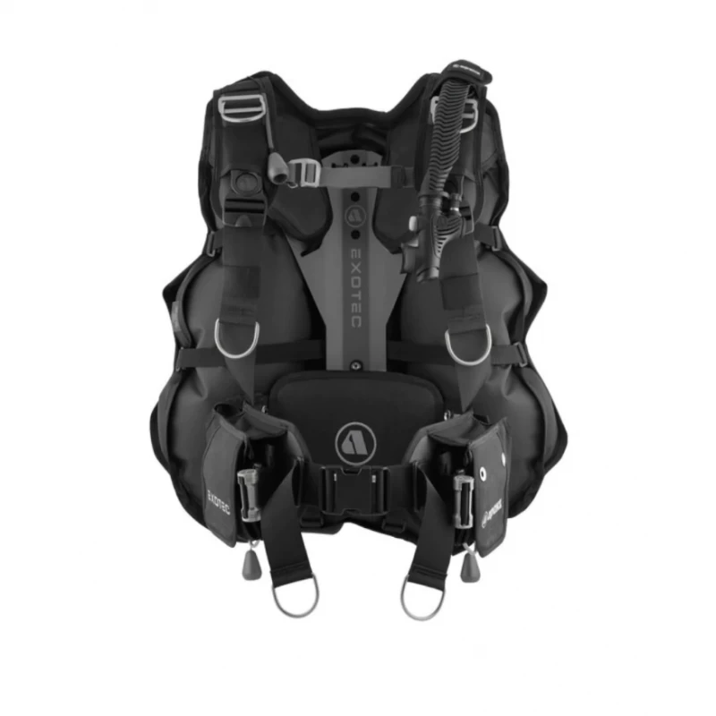 Kluczowe cechy Exotec: GripTek – tkanina utrzymuje BCD na miejscu zarówno na powierzchni, jak i pod wodą. Worek wykonany jest z super mocnej, gładkiej powłoki Armoguard, która zapewnia zwiększoną odporność na ścieranie, szybsze schnięcie i mniejsze ryzyko rozwoju bakterii. Pas na klatkę piersiową G-hak można łatwo obsługiwać jedną ręką. Płyta z regulacją w 3 pozycjach zapewnia optymalne dopasowanie oraz regulację w pasie i ramionach. 2 duże kieszenie można złożyć na płasko, gdy nie są używane. System uprzęży Wrapture – Wykorzystując opatentowane obrotowe klamry naramienne i opatentowaną, ultra cienką płytkę tylną, Wrapture oferuje niezrównany komfort i stabilność. Wrapture zapobiega „podjeżdżaniu” BCD. Na powierzchni Wrapture utrzymuje butlę blisko środka ciężkości i przenosi ciężar na biodra. Rezultatem jest komfortowa , pionowa pozycja na powierzchni. SureLock – mechaniczny system zwalniania balastu (opatentowany) – zapewnia bezpieczne zwolnienie jednym pociągnięciem. Jacket wyposażono w 4 zawory.