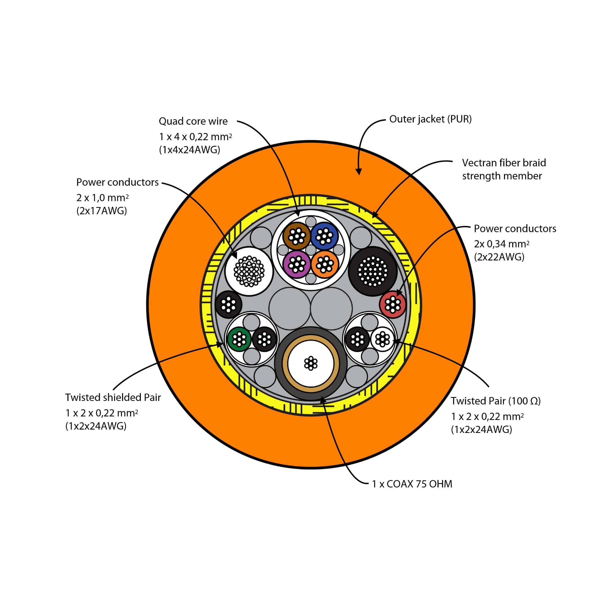 - 1x 4 x 0,22 mm² (4 x 24 AWG) Quad Core