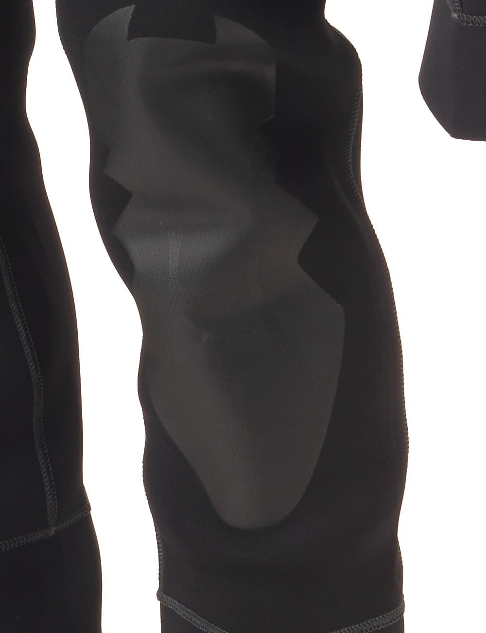 Wzmocnienie w okolicy kolan z elastycznego materiału, dzięki czemu kombinezon zyskuje na lekkości i elastyczności ruchów, dodatkowo chroniąc obszar częstego tarcia.